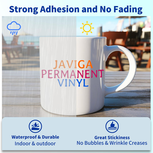 JAVIGA Black Permanent Vinyl for Cricut, Silhouette, Cameo, 12'' x 10 FT Matte Black Adhesive Vinyl for Daily Decorations, Indoor & Outdoor Matte Vinyl Roll for DIY Art Wall Stickers, Mug, Car Decals