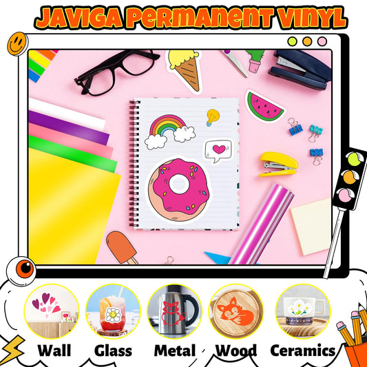 JAVIGA Orange Permanent Vinyl for Cricut Cutting Machines, 12'' x 40 FT Glossy Orange Adhesive Vinyl Roll for DIY Birthday Party Decorations, Wall Stickers, Mug, Festivals, Cards, Art Signs, Car Decals